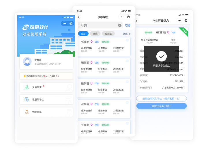 讓雙選全過(guò)程數(shù)字化、自動(dòng)化從管理員導(dǎo)入院系、專(zhuān)業(yè)、班級(jí)、學(xué)生、導(dǎo)師信息,到學(xué)生和導(dǎo)師自行修改信息,再到學(xué)生填報(bào)志愿、導(dǎo)師錄取學(xué)生,最終管理員在后臺(tái)查詢(xún)和統(tǒng)計(jì)志愿填報(bào)及錄取結(jié)果,整個(gè)流程實(shí)現(xiàn)了全程數(shù)字化、自動(dòng)化處理。