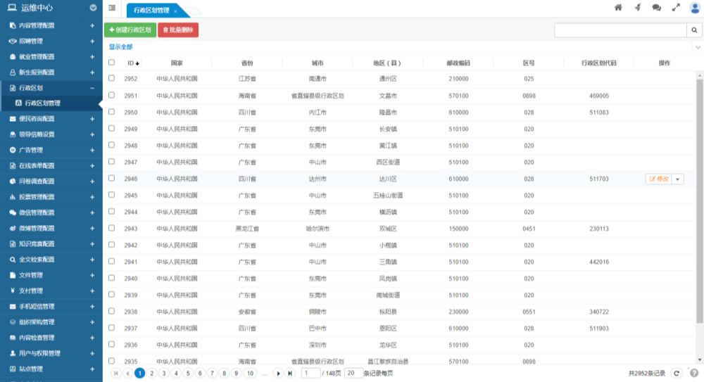 行政區(qū)劃與代碼管理支持行政區(qū)劃代碼管理,以全國統(tǒng)一行政區(qū)劃代碼為準。 支持行政區(qū)劃代碼的添加、刪除、修改、查看等功能。