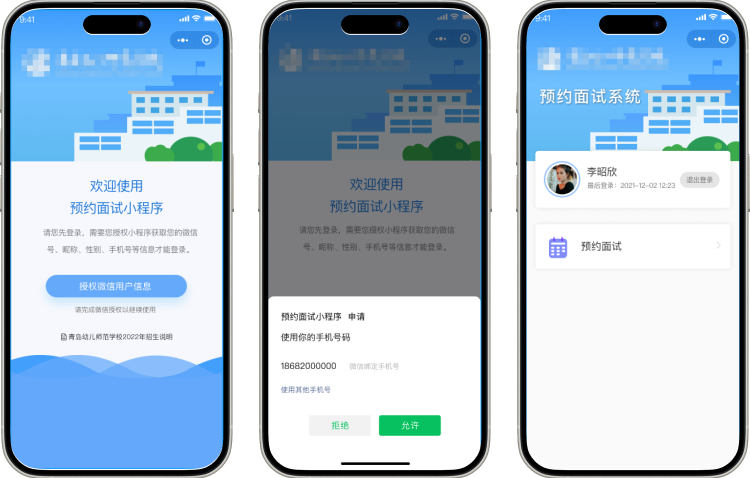 招生面試管理系統(tǒng)的考生端通過(guò)微信小程序進(jìn)行操作。