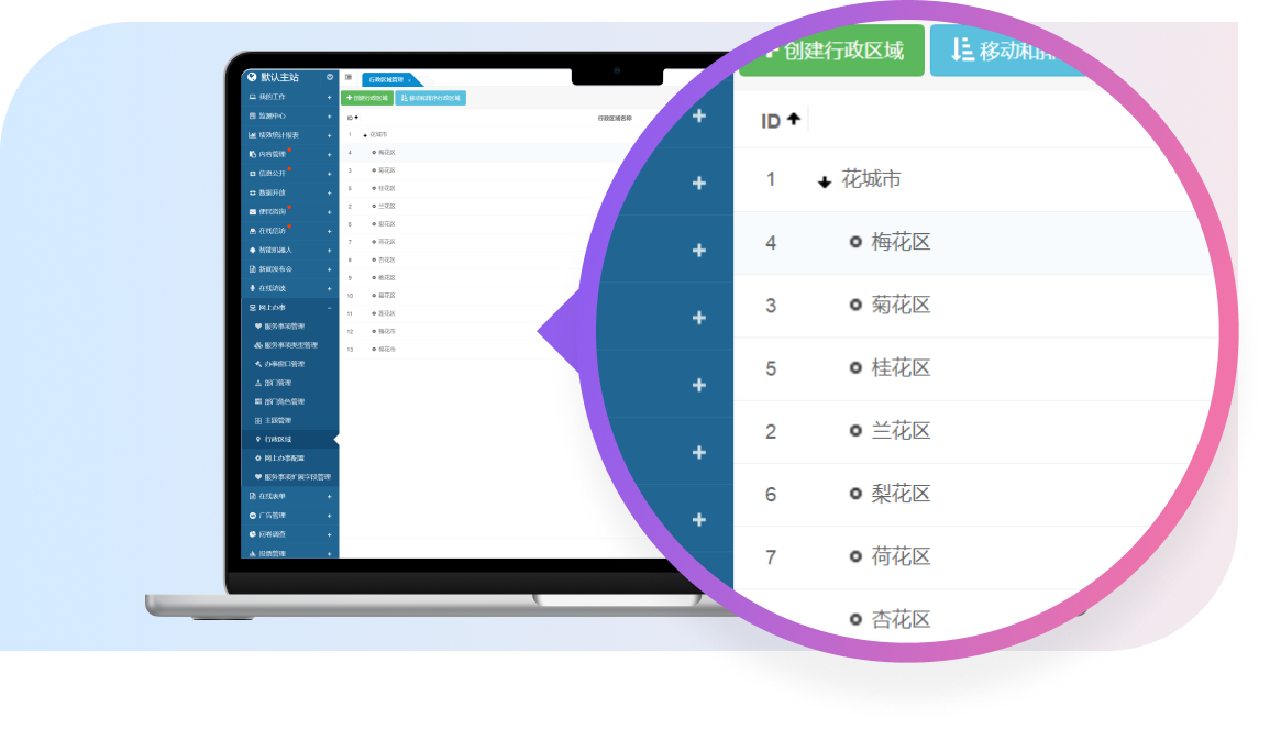 用戶可以根據(jù)實際需求,對行政區(qū)域進(jìn)行自定義排序和移動。